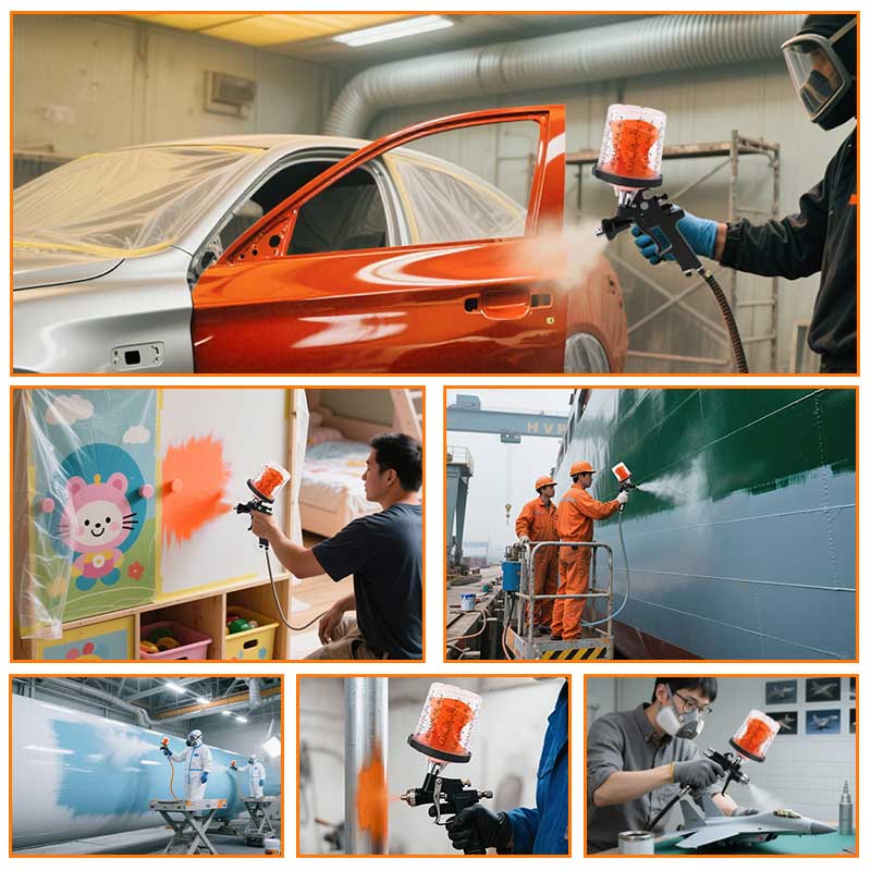 فنجان های اسلحه اسپری یکبار مصرفبرای انواع برنامه های کاربردی از جمله پالایشگاه خودرو ، نقاشی مبلمان ، دکوراسیون معماری و تولید صنعتی مناسب هستند و برای عملیات سمپاشی چند رنگ ایده آل هستند. آنها دارای یک طراحی اسپت استاندارد هستند و در هنگام استفاده از آداپتورها با اسلحه های اسپری برند اصلی قابل استفاده هستند.